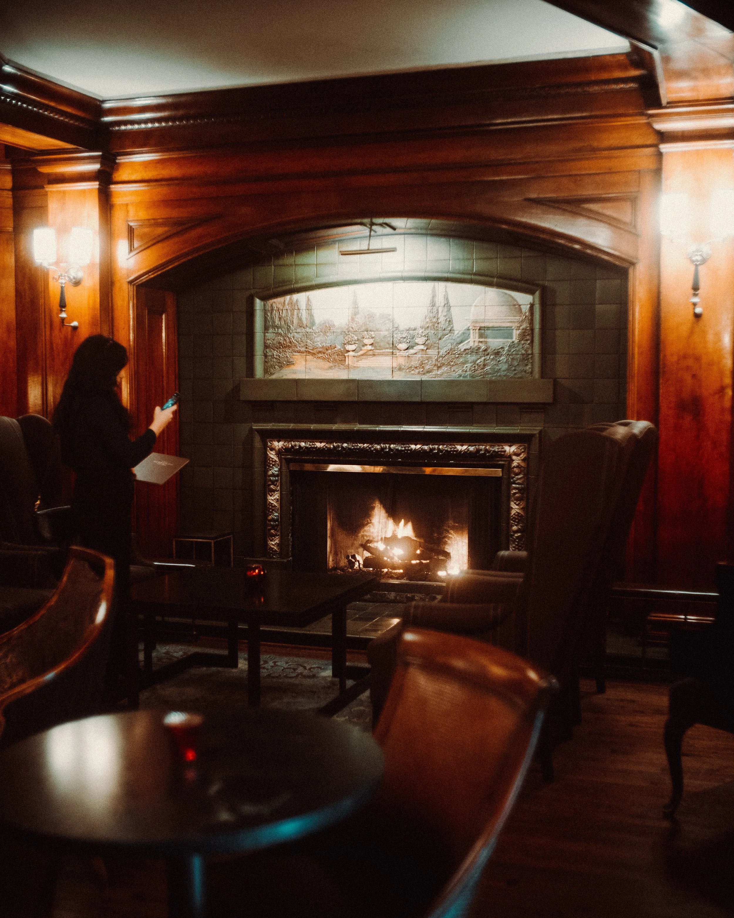 The Fireside Room, the sea green tiles above the hearth created by Rockwood pottery are both priceless and irreplaceable. Also where the famous grunge band Nirvana would come listen to Overton play piano.